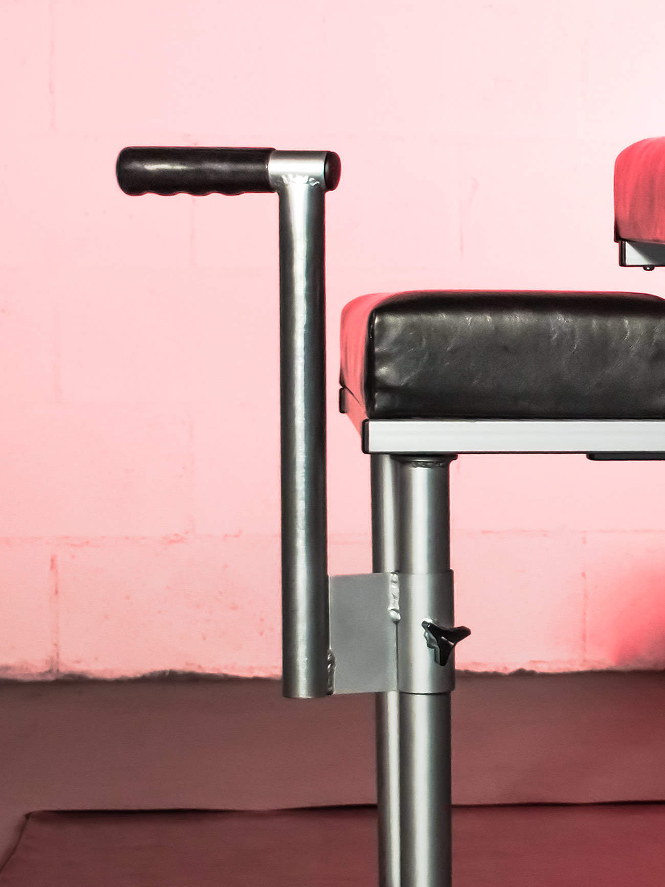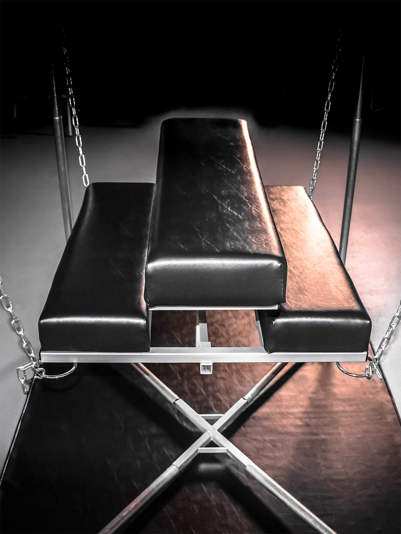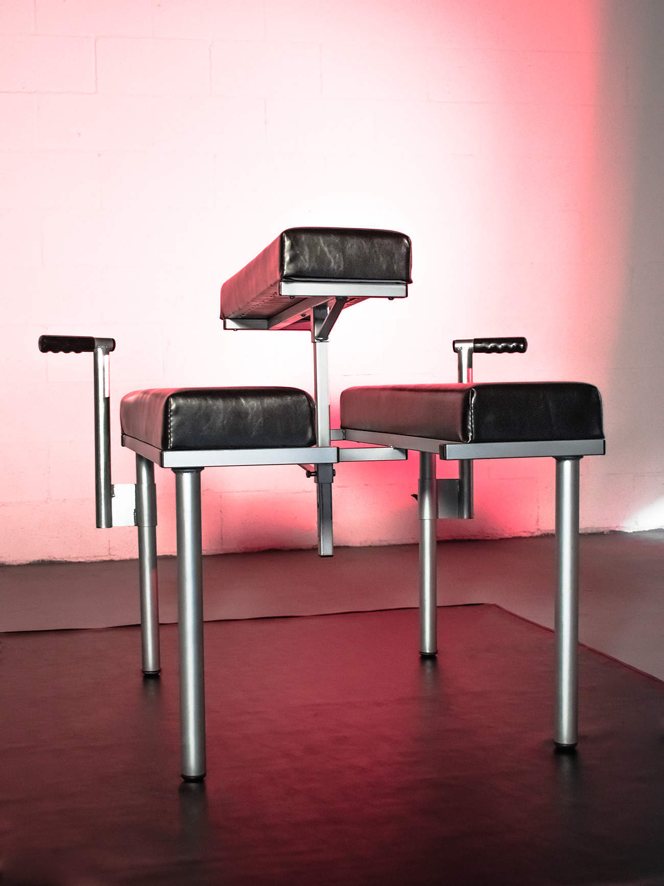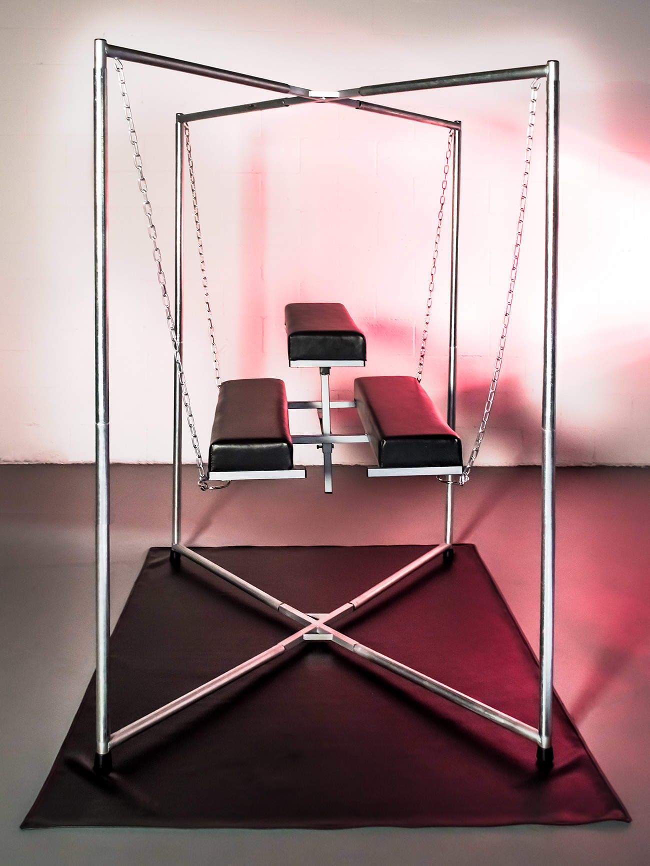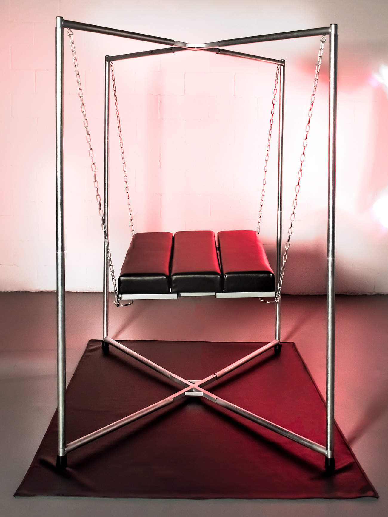 Equally at home in a contemporary apartment or a sleazy dungeon. The exposed welds, raw metal and silver sprayed joints are masculine, industrial and beautiful.
