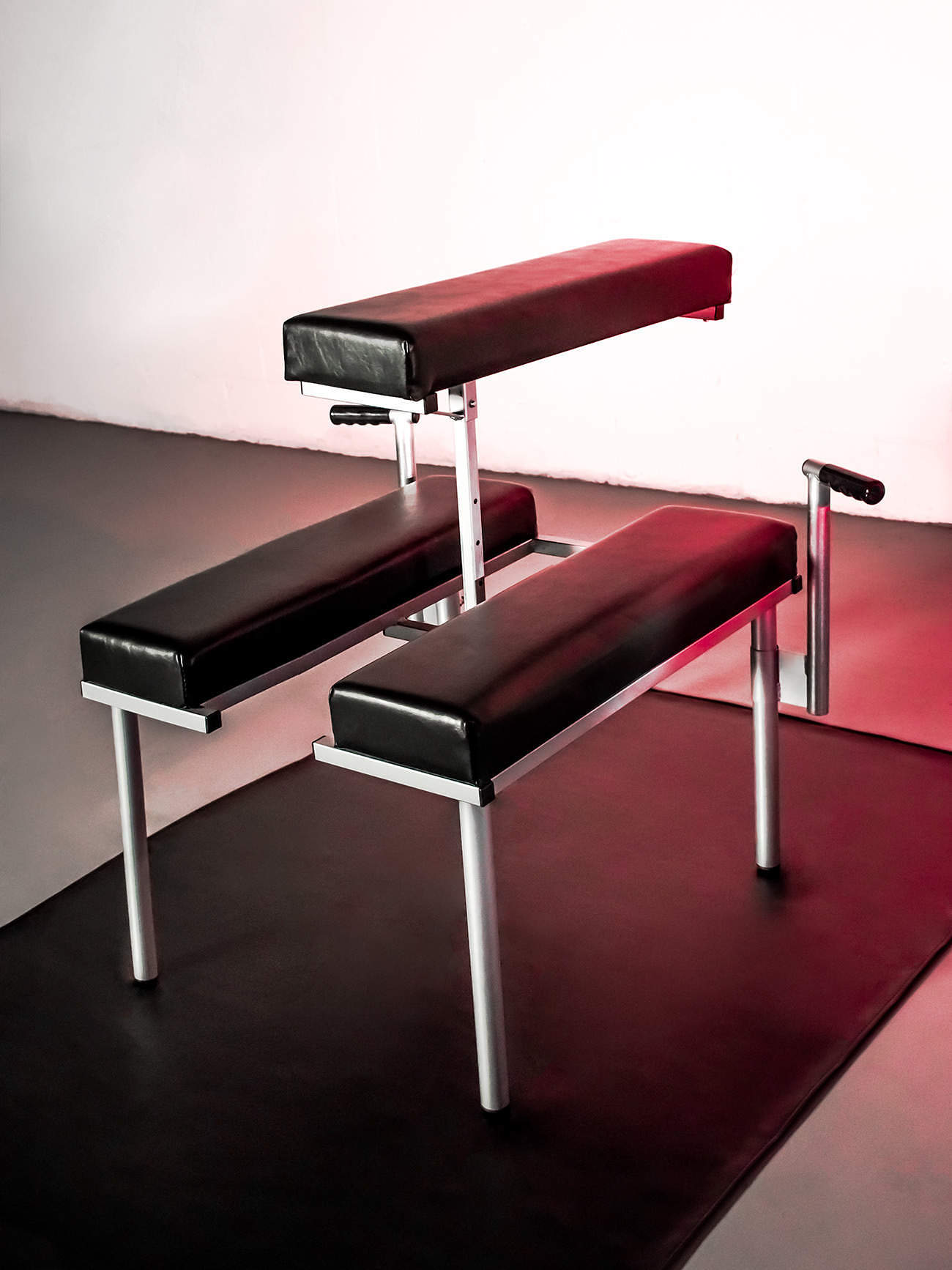 This is not just some modified, and inherently unstable, sawhorse like you see all over the internet. This real bench was designed from the ground up for one purpose…to give you the stability and versatility you need for the hot scenes you want. Unlike sawhorse designs, it won’t tip during mount/dismount or during use. Assembles and disassembles without tools and stows easily.