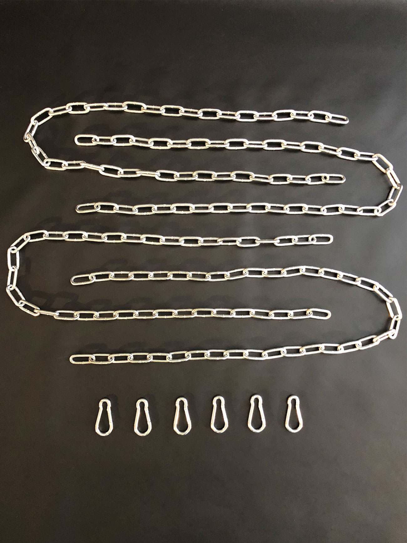 This chain and carabiners package is included in all of our sling + frame combo kits.